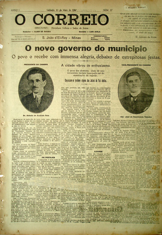 S. João d' El-Rey, 27 de março de 1930." (O Correio: "O Dr. Andrade Reis dirige-se ao povo de S. João d' El-Rey", Anno IV, nº 183, de 30 de março de 1930)