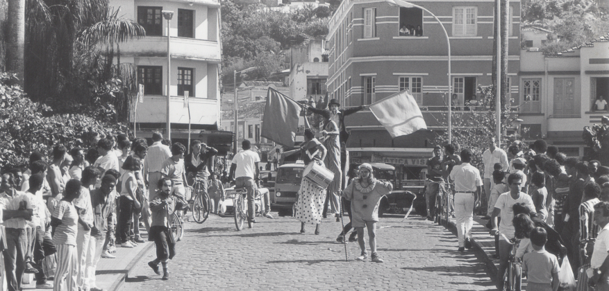 Apresentação da peça “A Peste e o Intrigante”, do grupo Giramundo, na abertura oficial do 19º Festival de Inverno da UFMG, realizado em São João Del Rei em 1987. Foto: Eber Faioli. Acervo: Cedecom UFMG
