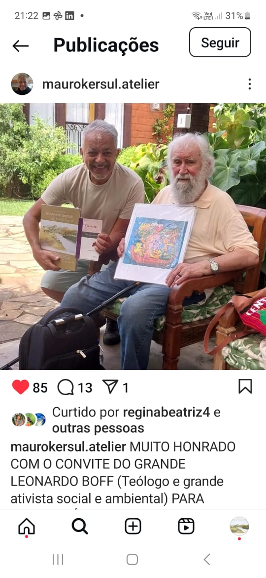 Mauro Marques Kersul, pintor e escultor, entrega obras suas e o livro Ser nobre é ter identidade, que tem uma linda ilustração sua na página 48.