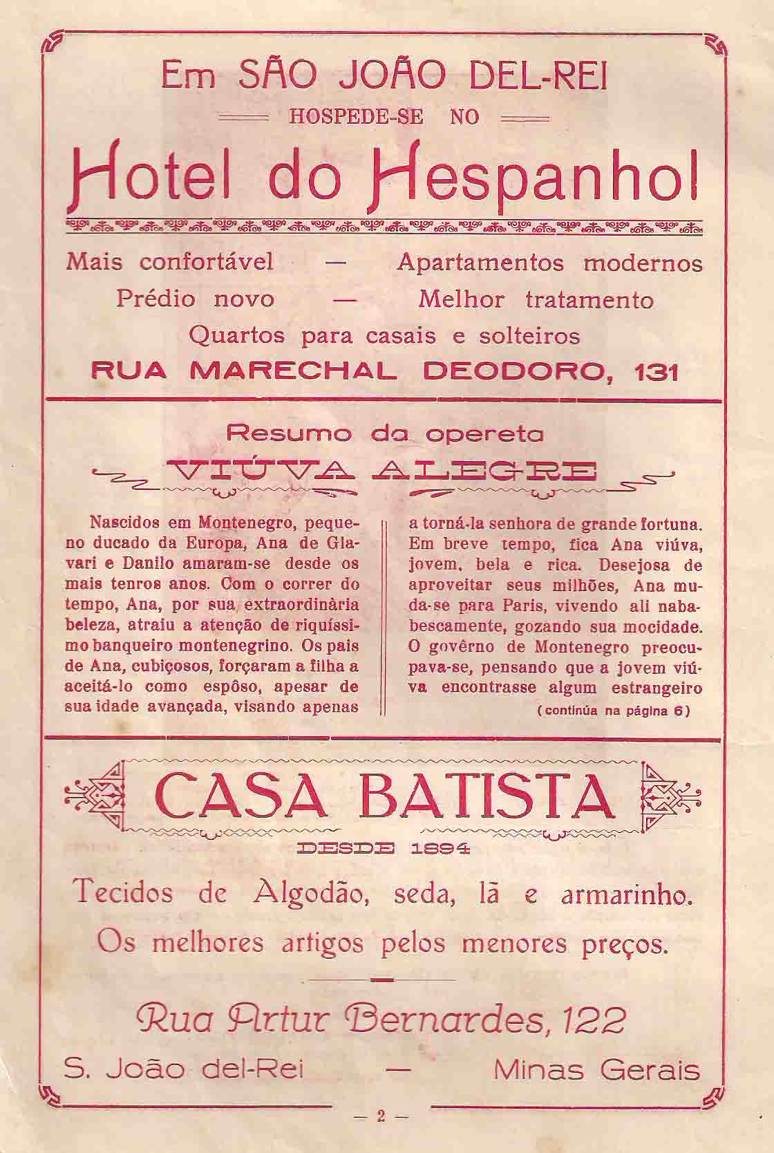 Operetas de São João del-Rei . A viúva Alegre . 1956