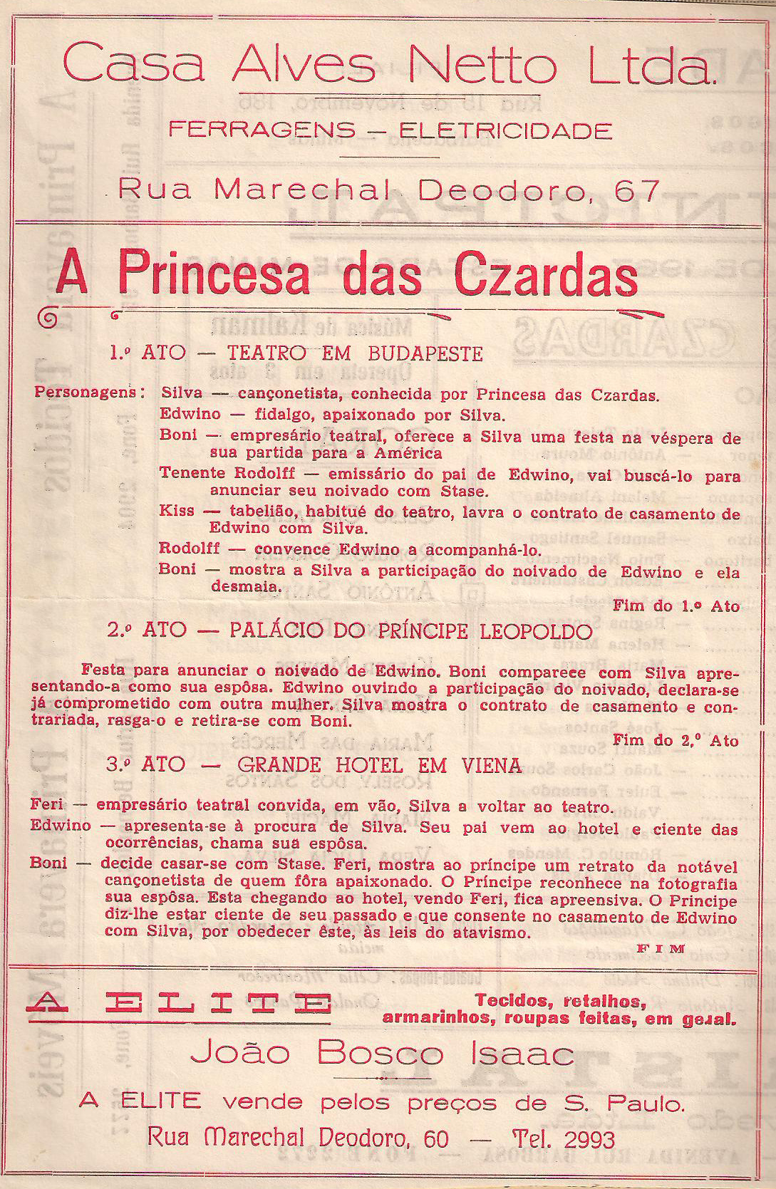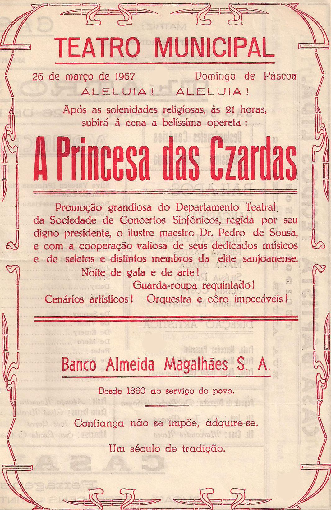 Operetas de São João del-Rei . A Princesa das Czardas . 1967