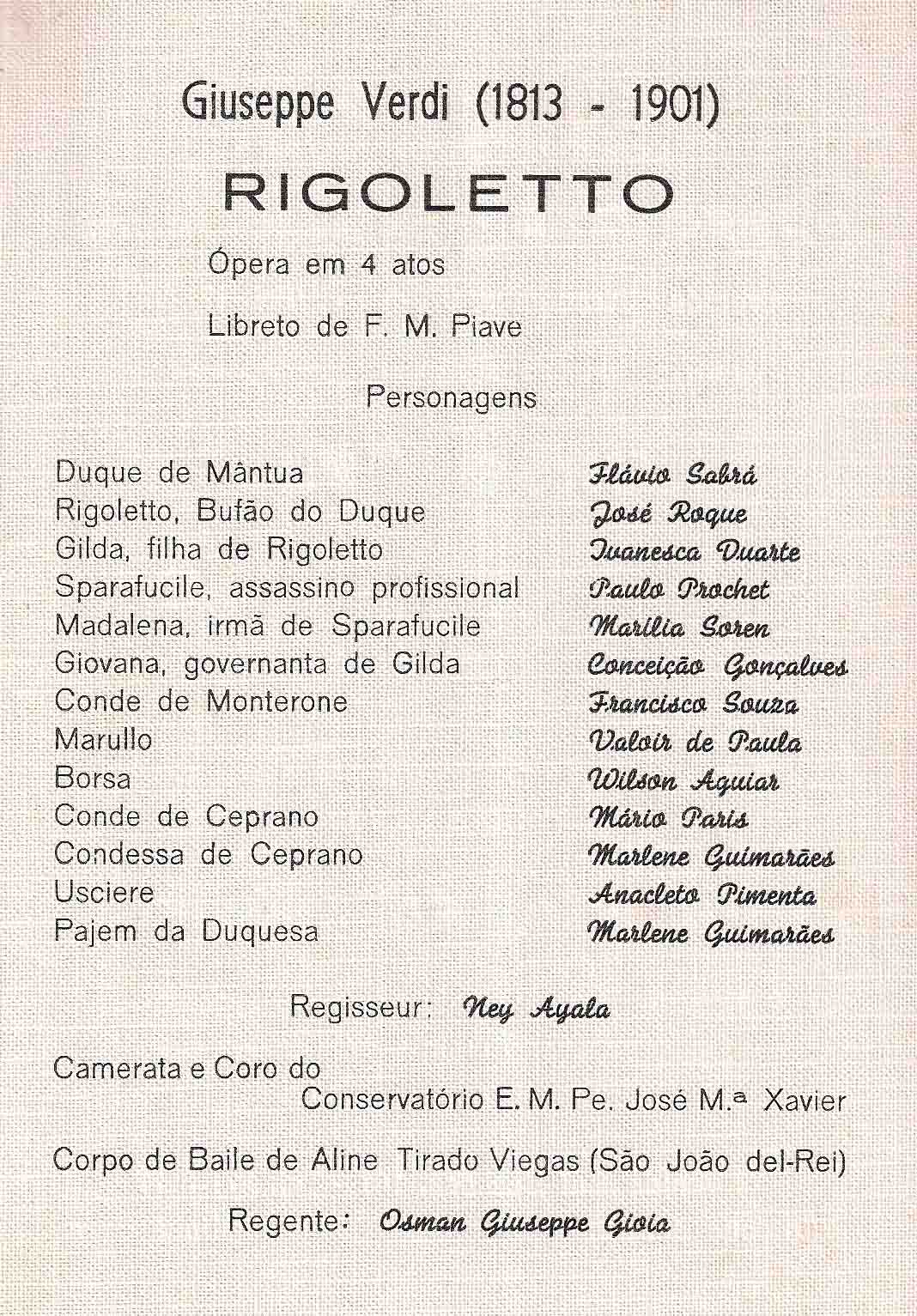 Operetas de São João del-Rei . Rigoletto de Giuseppe Verdi . 1984