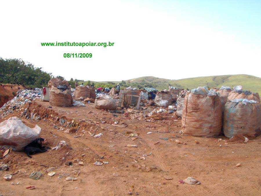 Existe uma pessoas que está explorando o lixo, disponibilizando de um caminhão e um trator. Esta pessoa vende o lixo e paga os catadores, segundo informado por eles. Não há equipamento de proteção individual, nem respeito a legislação trabalhista, não foi revelado o valor do pagamento aos catadores.