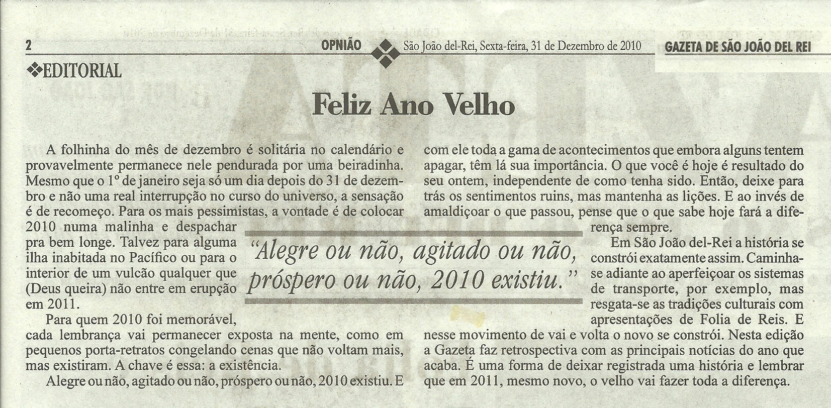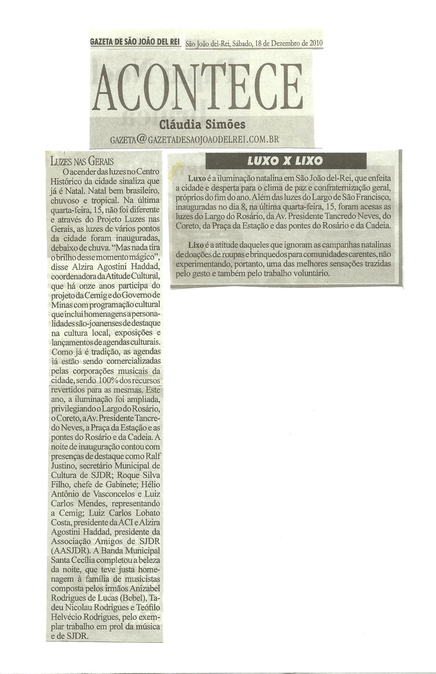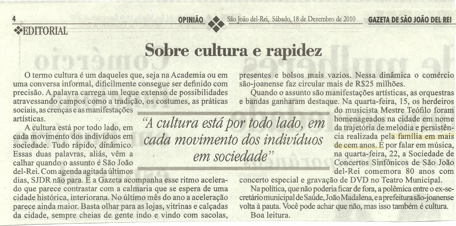 Clipping de Notícias . Fim de Ano e Férias Cultural 2010 . Atitude Cultural e Parceiros . São João del-Rei