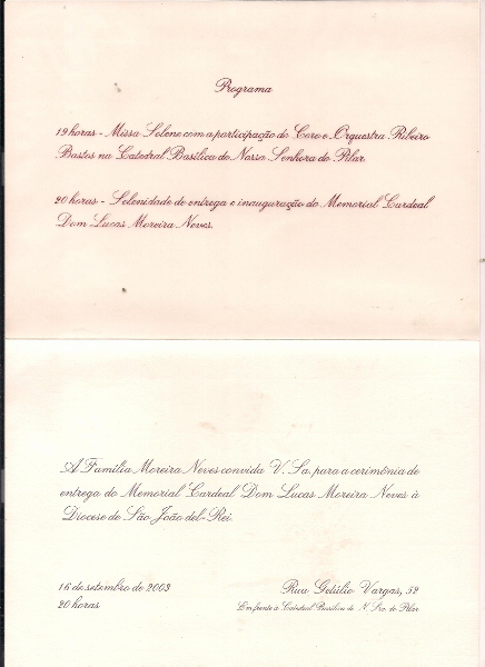 Quem passar despercebido pela Rua Getúlio Vargas (antiga Rua direita), perderá a oportunidade de conhecer em São João del-Rei, a história de mais um de seus ilustres personagens. Em frente à igreja do Pilar está localizado o Memorial Cardeal Dom Lucas Moreira Neves, erguido em 16 de setembro de 2003, por ocasião da comemoração de seu primeiro aniversário póstumo.