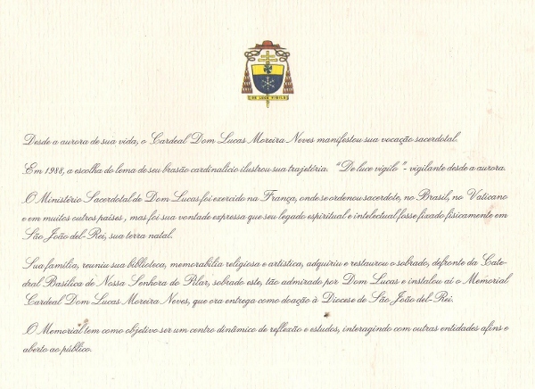 A história do homem que acompanhou de perto a vida de três Papas, é amplamente esmiuçada e preservada no Memorial, onde se pode encontrar uma biblioteca com mais de 20.000 livros catalogados aberta ao público. Um destaque todo especial é dado à sala Memorabilia, onde se encontram os pertences pessoais de Dom Lucas, entre a roupa de seu batismo até seu último hábito de Arcebispo.