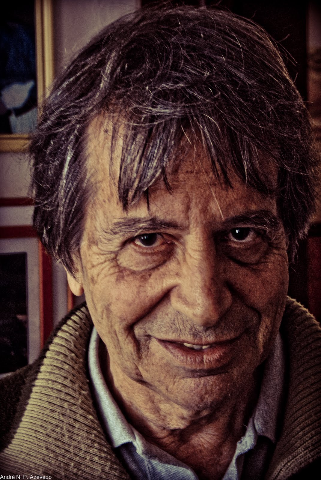 O que se vê são dois pianos, um amontoado de pastas que mais tarde fui descobrir serem suas composições, uma coleção de placas de homenagens que recebeu e na parede fotos em que aparece acompanhado de outros pianistas, como Egveny Kissin, célebre pianista russo. “Esses são os mais impressionantes pianistas que tive a honra de conhecer”, conta.