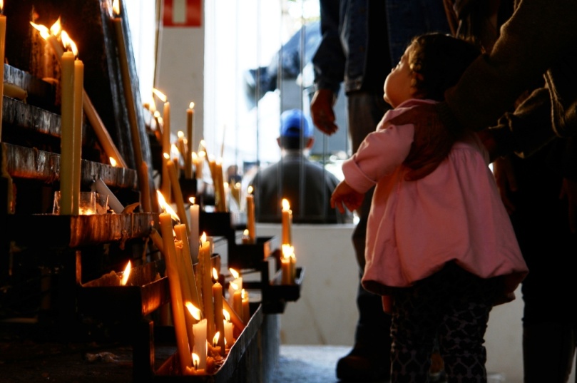 Uma fila enorme que dá voltas em torno da capela conduz os fiéis até as imagens do Pai Eterno, do Filho e do Espírito Santo. Não há reclamação nesta espera. As pessoas aguardam resignadas, mesmo com o frio intenso. Enquanto os adultos conversam entre si, como velhos conhecidos, as crianças, muitas crianças, brincam ao redor. Alto falantes transmitem para o exterior as celebrações internas, que acontecem durante todo o dia, sempre com a igreja abarrotada de devotos.