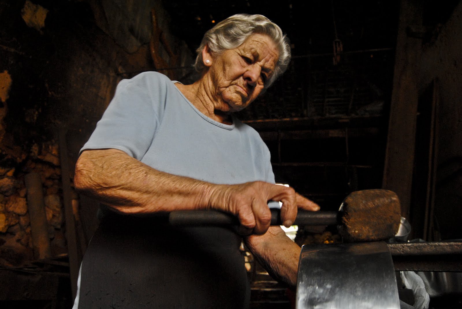 D. Anita é paneleira. A arte de consertar panelas foi aprendida com seu falecido marido João da Conceição Valim. “Meu marido era funileiro, paneleiro e eletricista, era muito requisitado, por isso eu ajudava no conserto das panelas, depois que ele morreu eu continuei com a profissão”, conta D. Anita, enquanto bate, com uma força impressionante para uma senhora de 86 anos, as panelas com um martelo, para desamassá-las.